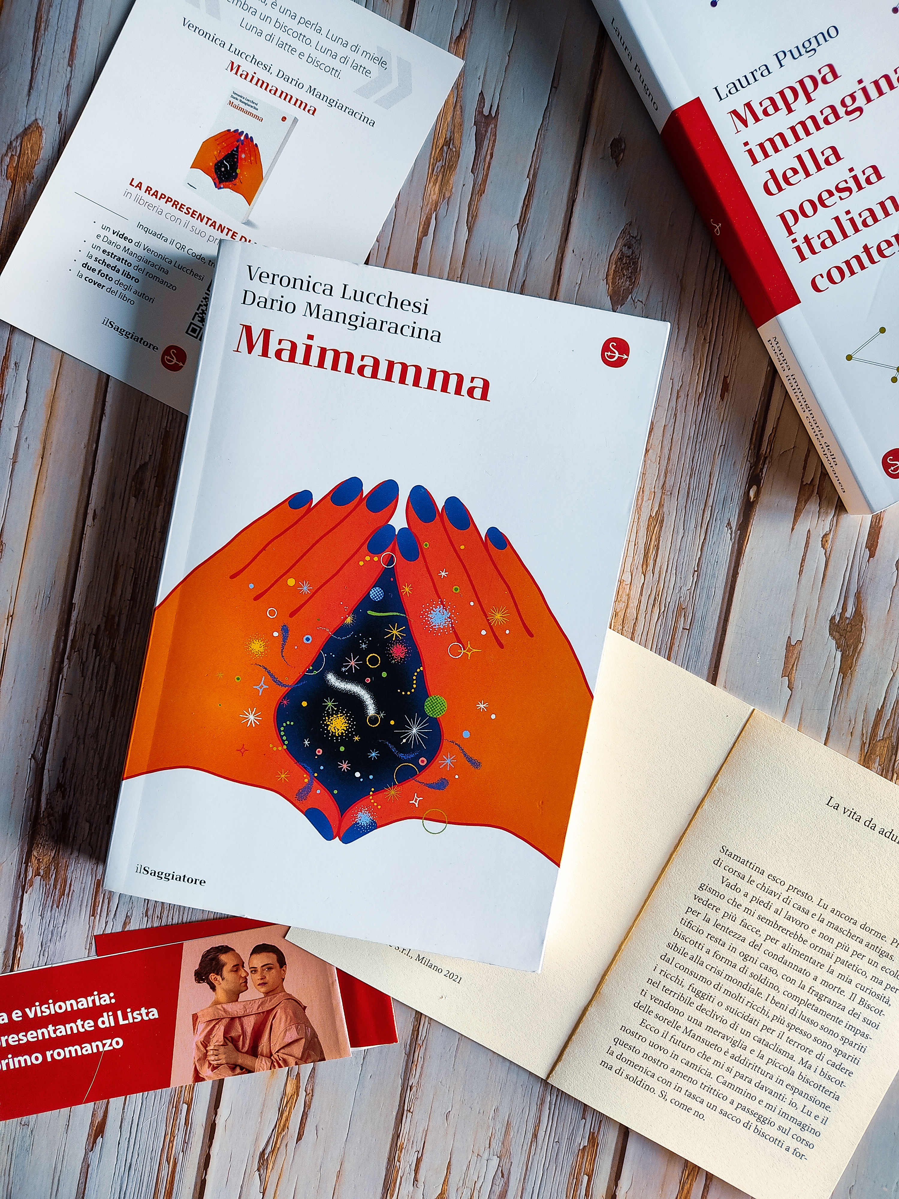 Veronica Lucchesi e Dario Mangiaracina, in arte La rappresentante di lista, nel 2021 hanno pubblicato il loro primo romanzo a quattro mani intitolato Maimamma, su ispirazione del loro ultimo album, Mymamma. Il romanzo racconta le vicende di Lavinia che, da poco compiuti i trent’anni, comincia a porsi domande sulla sua vita, vissuta fino a quel momento quasi inconsapevolmente, sul suo presente quasi privo di stimoli, sul suo passato fumoso e sul futuro incerto. Avere trent’anni e affrontare l’esistenza in un mondo che sta per finire è una situazione nella quale le ultime generazioni possono facilmente immedesimarsi.